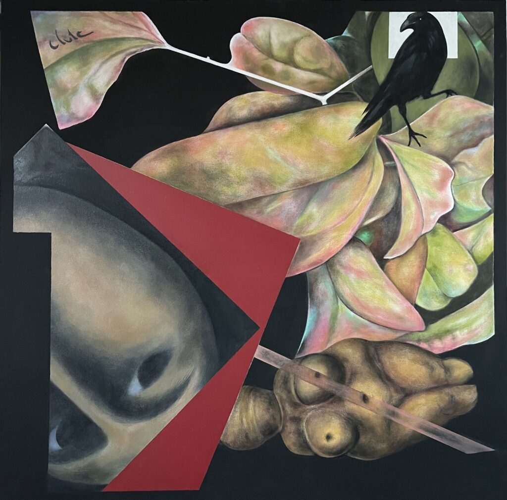One foot in Eden 2025 .. oil …1000 x 1000 mm .. GBP 4000